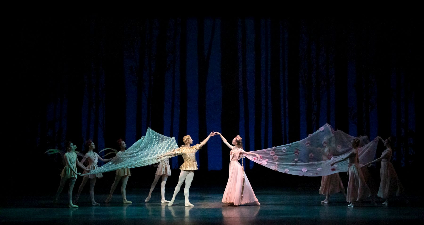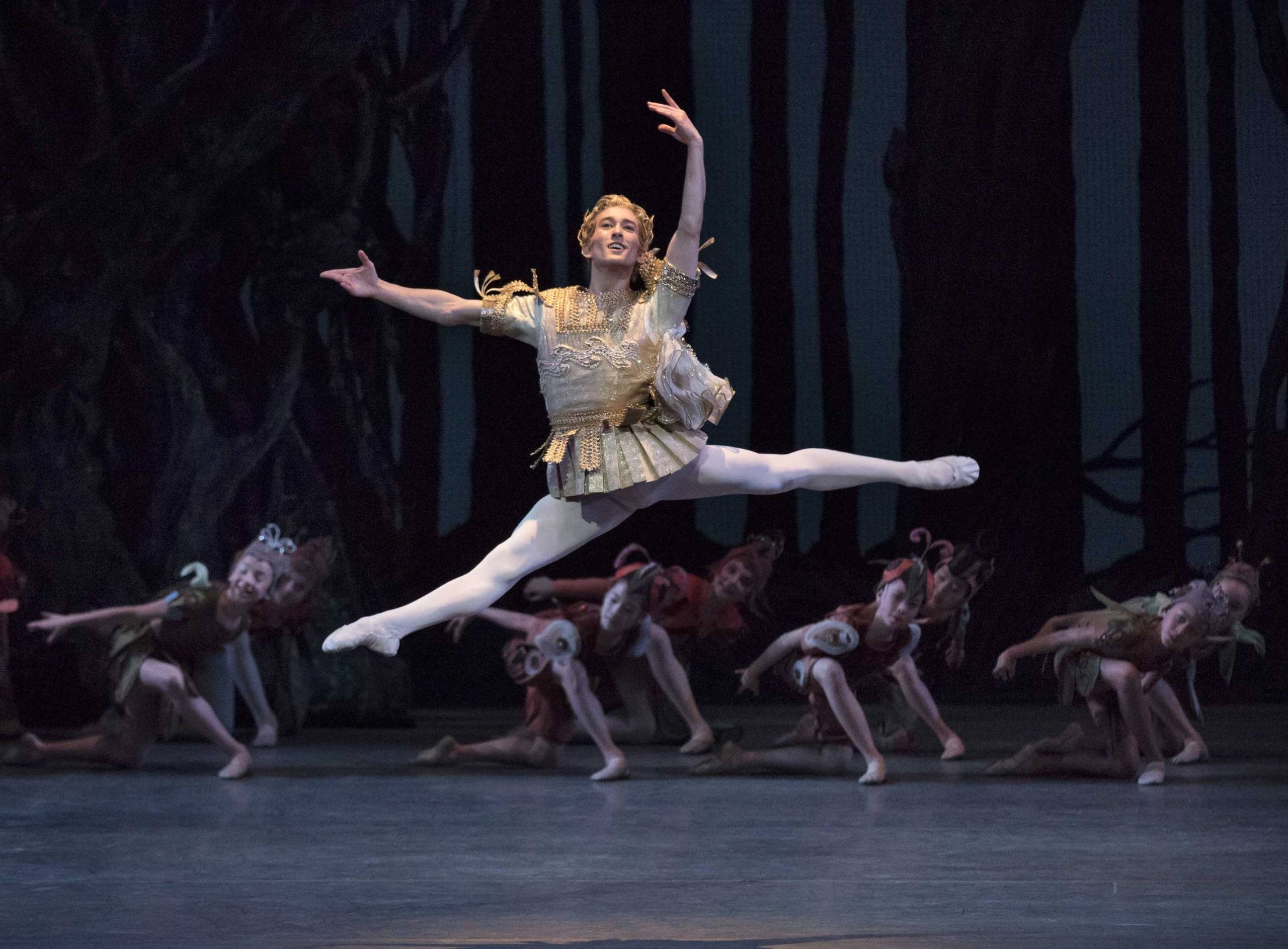 A full-length adaptation of one of Shakespeare’s most cherished comedies, and inspired by the music of Mendelssohn, Balanchine captures the play’s infinite colors: the bumbling comedy of the Rude Mechanicals, the feisty feuding between Titania and Oberon, the romantic confusion of the young lovers chasing each other through the Athenian forest, and of course the mischief-making Puck — in a ballet of myriad pleasures.